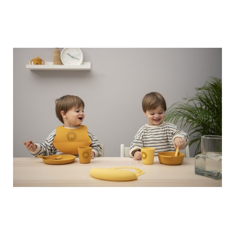 A hora da refeição fica mais animada com este conjunto. Um presente adorável para os mais pequenos, este conjunto de refeição em silicone suave ao toque foi cuidadosamente concebido para eles. Contém tudo o que precisam para as refeições: colher, tigela e copo, além de carinhas fofinhas de animais.