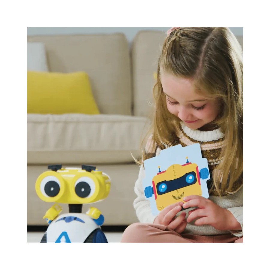 Inclui:1 robot Andy | 9 cartões para jogo de programação | 1 script de jogo para aprender a programar.