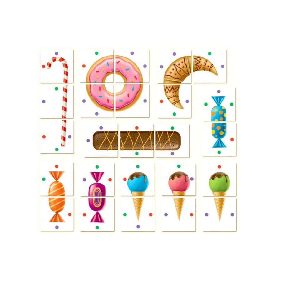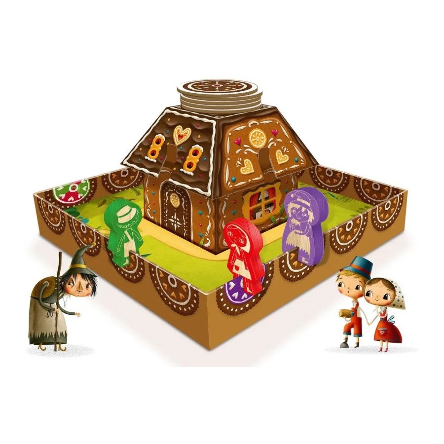 Escolhe uma peça de doces e junta-as às que estão na mesa de jogo. Move os peões da Hansel, da Gretel e da Bruxa Má. Se conseguires recolher 5 bolachas de gengibre vencerão!