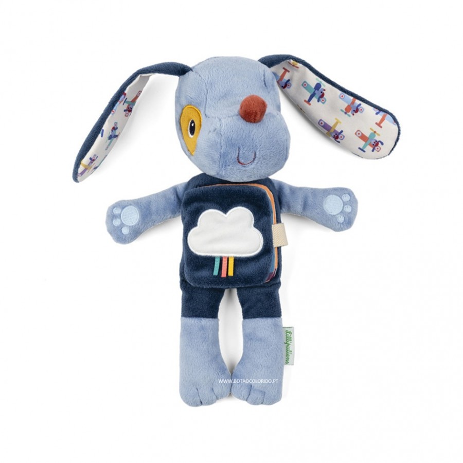 Este peluche de 26 cm é ideal para acompanhar os mais pequenos na hora de dormir, a partir dos 6 meses de idade. Com o seu pequeno livro de tecido integrado e a sua função fosforescente, o cãozinho Jules conhece os rituais da hora de dormir de cor. Faz companhia ao seu filho e brilha suavemente quando a luz se apaga. A surpresa deste peluche da Lilliputiens é a nuvem e as patinhas do Jules que brilham no escuro: sim, é um peluche fosforescente!