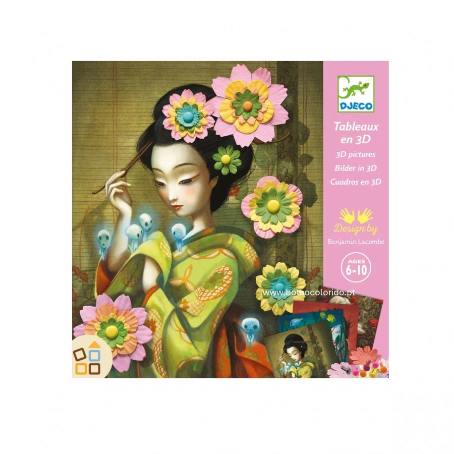 Idade: 6-10 anos e todos os joverns/adultos que gostem de moda | Marca: Djeco | Contém: 4 placas ilustradas pré-perfuradas (20 x 20 cm), mais de 100 cabeças de flores de papel, 30 prendedores e 1 livreto de instruções colorido passo a passo. | Feito de papel e cartão com certificação FSC®. | Tamanho da embalagem: 20X20 cm