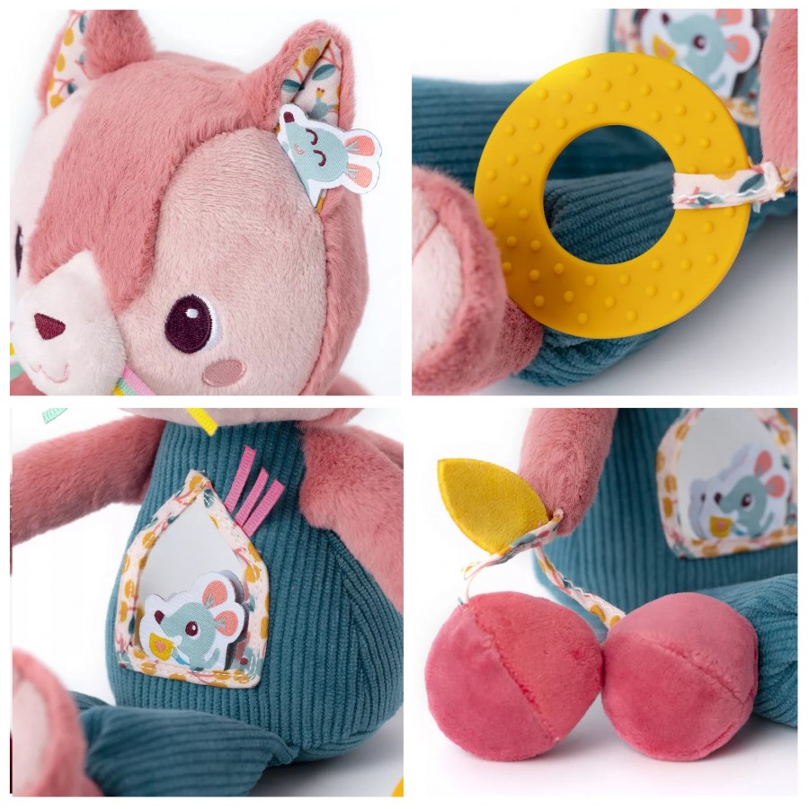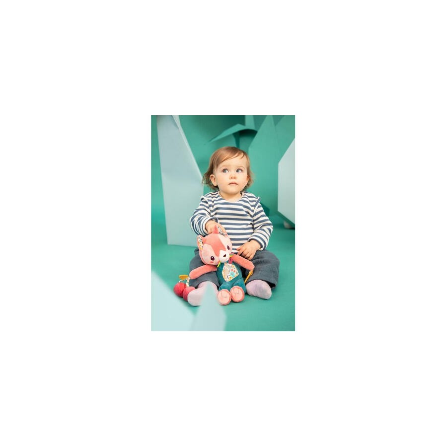 Peluche de atividade, perfeito para estimular os sentidos do bebé e desenvolver as suas capacidades motoras finas.