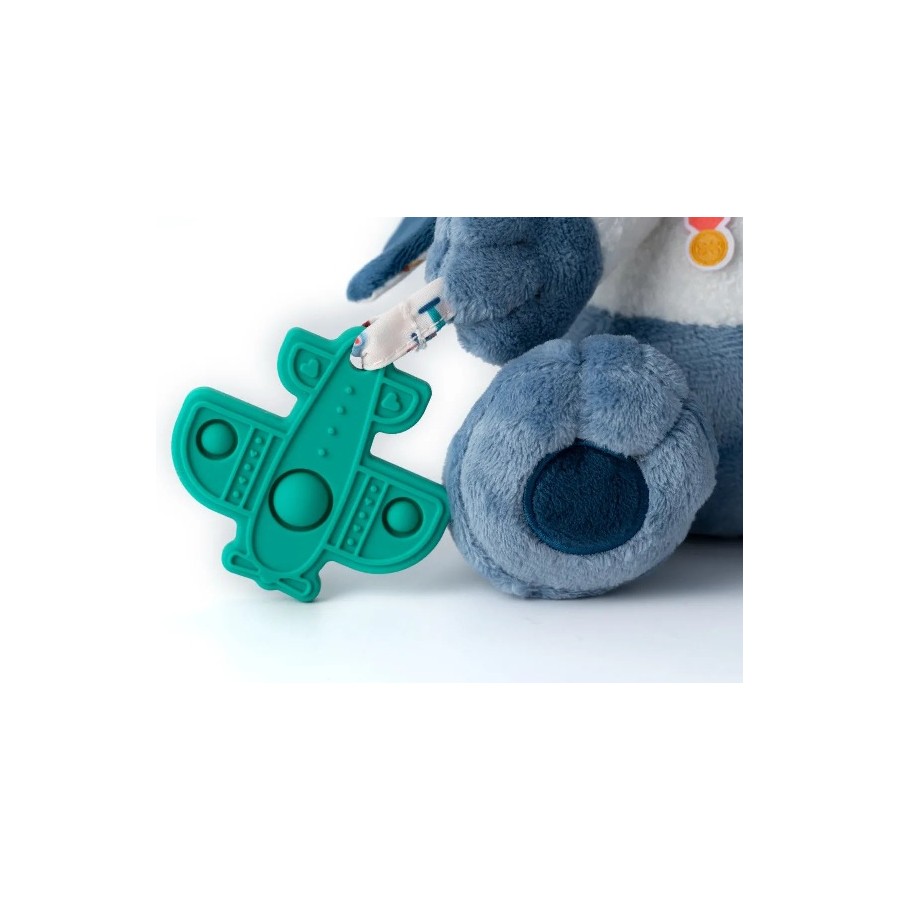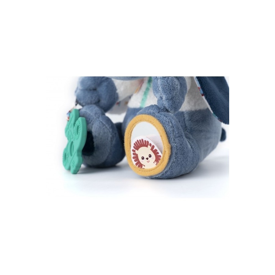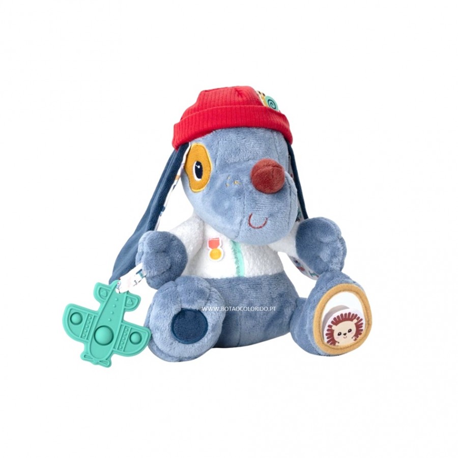 Peluche de atividade, perfeito para estimular os sentidos do bebé e desenvolver as suas capacidades motoras finas.