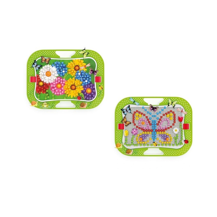 O jogo clássico de pinos, enriquecido com insectos para decorar com autocolantes, dando a oportunidade à criança para recriar um ambiente natural, com flores, borboletas, libélulas e pássaros. Ideal para desenvolver a motricidade fina, pensamento cognitivo, pensamento crítico e estratégico, e também para a melhorar a linguagem.