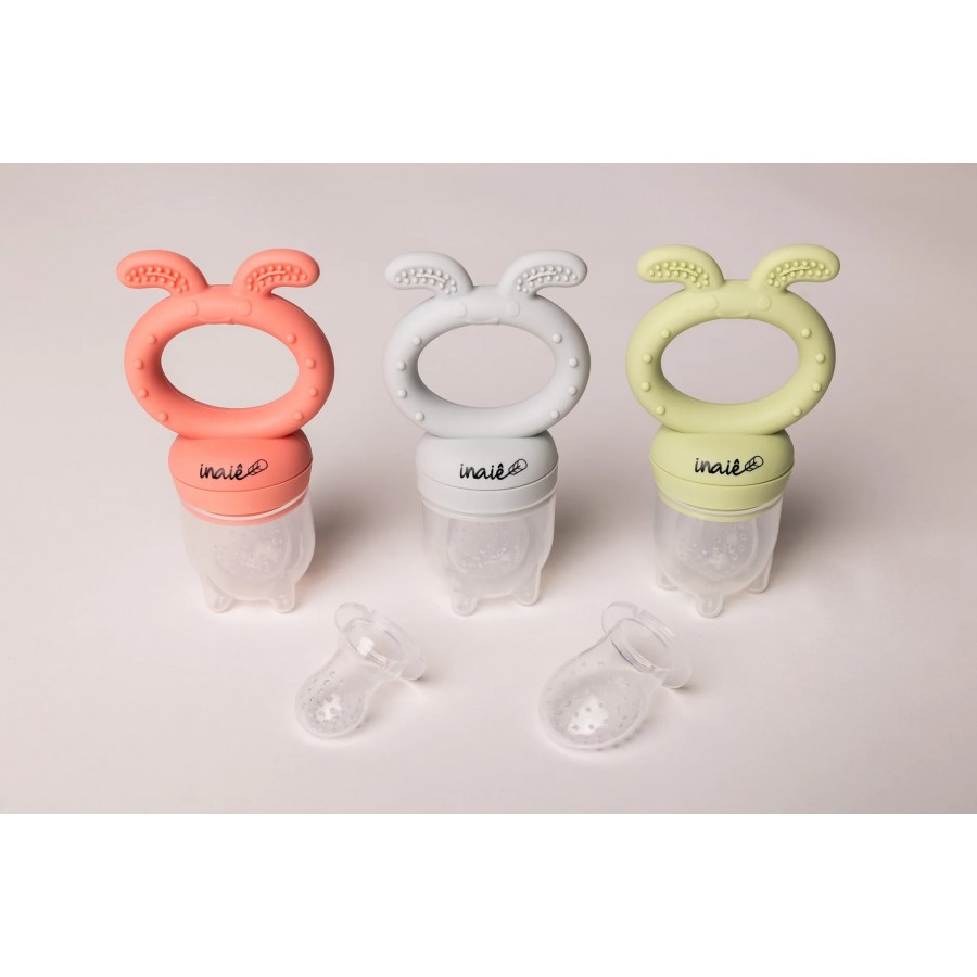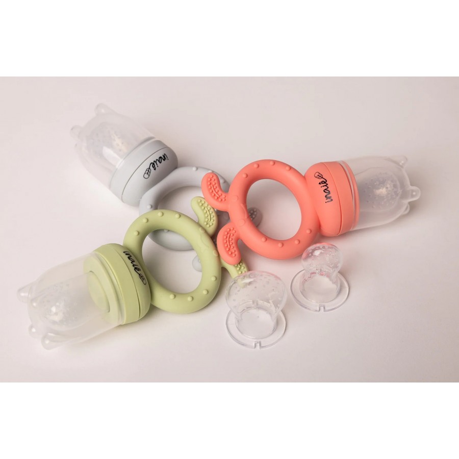 O Alimentador & mordedor é uma maneira única e divertida de dar ao seu bebê o primeiro gosto de fruta de verdade. É feito de silicone de grau alimentar, não toxico e livre de BPA. Ele foi projetado para mãos pequenas segurarem com facilidade, o seu bebé será capaz de segurá-lo com firmeza enquanto se alimenta.