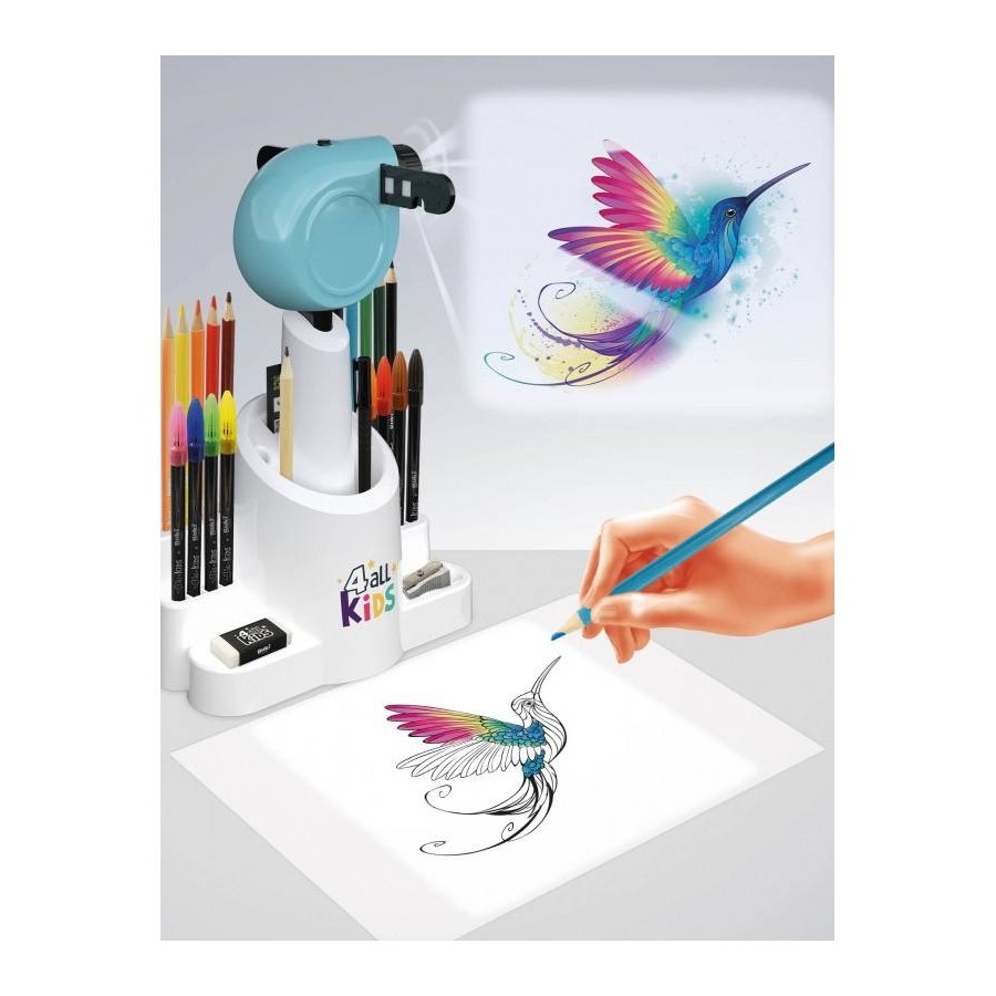 Projetor para reproduzir imagens e desenhos infinitamente! Desenhe a imagem a preto e branco numa folha de papel para traçar os contornos e, em seguida, projete a imagem a cores para o ajudar a colorir o seu desenho.