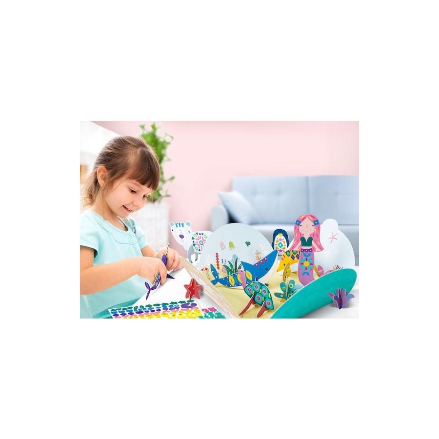 Cria um maravilhoso mundo subaquático com este Set Stick & Play da Avenir. Brinca com mais de 200 adesivos reutilizáveis. Cada kit contém 8 cartões com formas ilustradas e autocolantes reutilizáveis para criar designs e cenários de jogo únicos! Cada kit contém 8 cartões com formas ilustradas e mais de 200 autocolantes reutilizáveis, incluindo uma sereia, um urso polar, um narval e uma tartaruga. Perfeito para contar histórias e jogos de faz de conta!