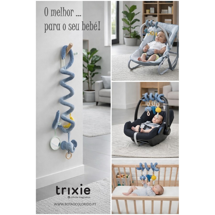 O Presente Perfeito para Recém-Nascidos. Esta espiral de atividades da marca Trixie é verdadeiramente fantástica! Adequada desde o nascimento, possui três elementos lúdicos para descobrir, incluindo sons, texturas, movimentos e muito mais. A espiral enrola-se perfeitamente em qualquer ovinho ou espreguiçadeira, para que o seu bebé se divirta durante horas onde quer que você vá!
