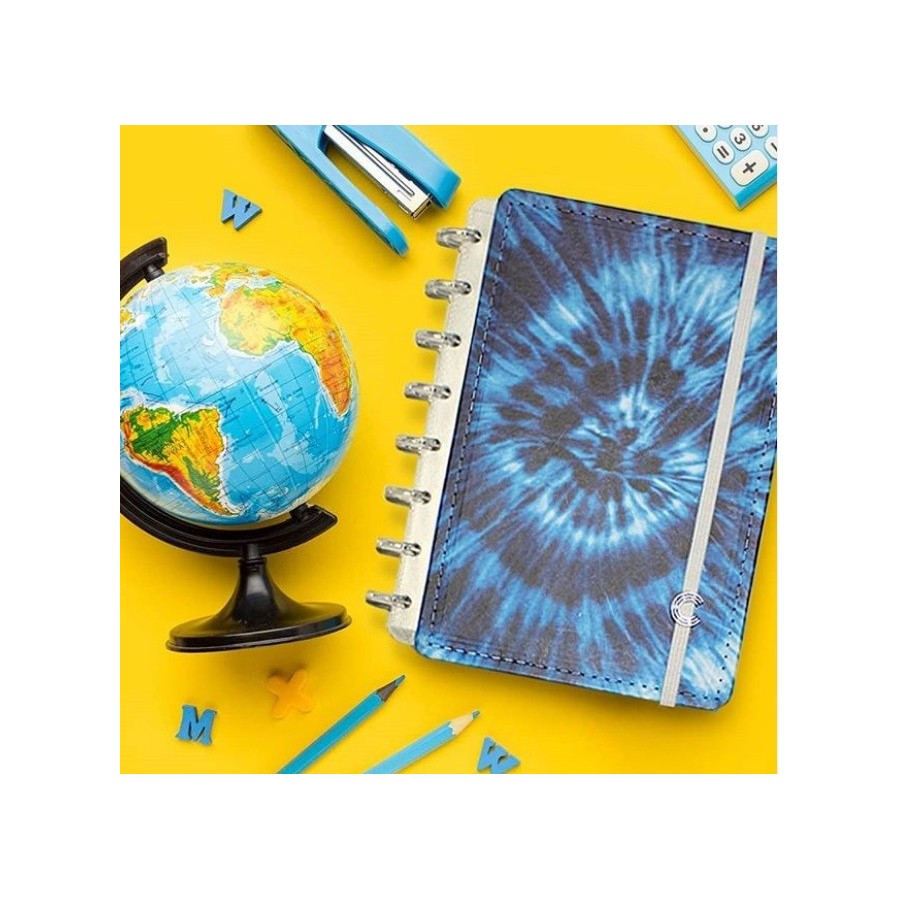 O caderno que tiras e colocas as folhas quando quiseres! O caderno inteligente no formato A5 tem espaço para as tuas anotações e até para dar asas à imaginação, só tens de escolher por onde começar. Leva-o para onde quiseres e regista todas as tuas ideias. O A5 é composto por uma capa e contracapa rígidas; por uma bolsa plástica; uma folha de instrução de uso com recargas e acessórios da marca disponíveis no verso; uma folha de identificação com calendário no verso; quatro divisórias com abas para identificação (2 pretas e 2 transparentes); 80 folhas offset de 90g (60 folhas pautadas e 20 folhas lisas brancas para impressão); por um suporte com elástico para caneta ou lápis; e discos M + elástico.