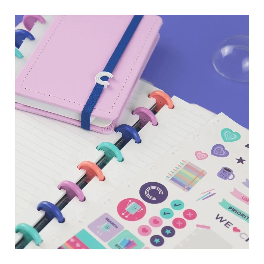 Podes ter o teu caderno inteligente personalizado ao teu estilo: tirar e recolocar capas, folhas, trocar os discos e usar diversos acessórios.