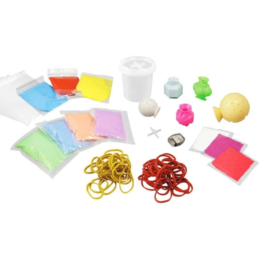 Um fantástico conjunto de ciência para criar verdadeiras bolas saltitonas que são bastante coloridas e realmente divertidas. Este conjunto inclui moldes esféricos e muitas bolsas com pó colorido. O processo é simples e rápido: imerge o molde em água e depois deixa-o repousar por alguns minutos e ... a experiência está completa! Simplesmente divertido e pronto para brincar. Inclui um rico manual ilustrado que explica o processo de preparação de forma simples e fácil.