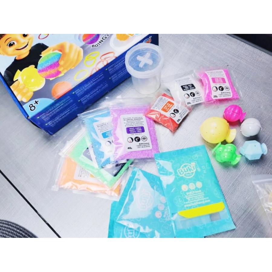 Marca: BUKI | Design: França | Idade: 8-98 anos| Contém: 64 elásticos, 5 moldes de bolas diferentes, módulo luminoso para as tuas bolas e pó de várias cores
