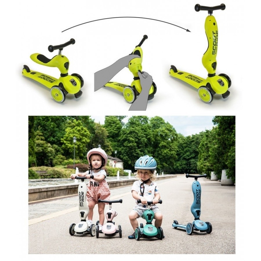 O Highwaykick 1 é o companheiro ideal para crianças de um a cinco anos. Devido à sua estabilidade, este produto oferece aos pequenos a oportunidade de se mover com segurança e conforto. O amortecedor dianteiro está patenteado e oferece segurança extra. Assento grande e confortável. Não necessita de ferramentas para a transformação de triciclo para trotinete. Altura ajustável. Idade recomendada: De 1 a 5 anos