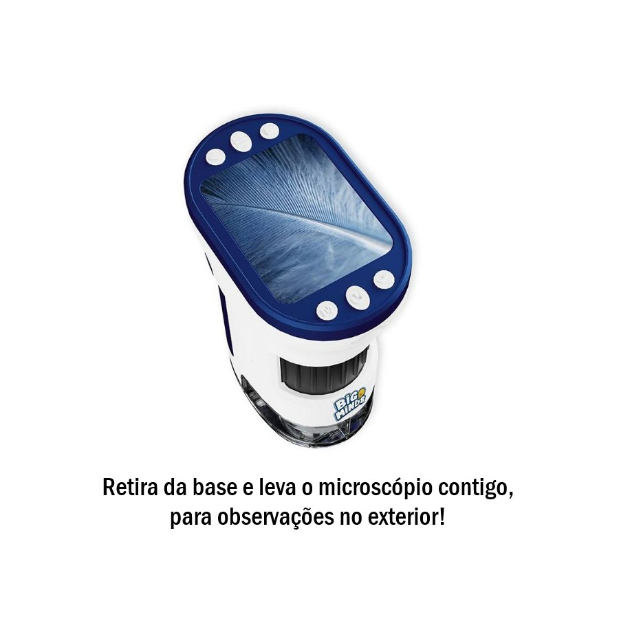 Descobre o mundo microscópico com o microscópio digital. O Microscópio Digital é a ferramenta perfeita para que meninas e meninos explorem o fascinante mundo do micromundo. Equipado com um ecrã LED de 2.