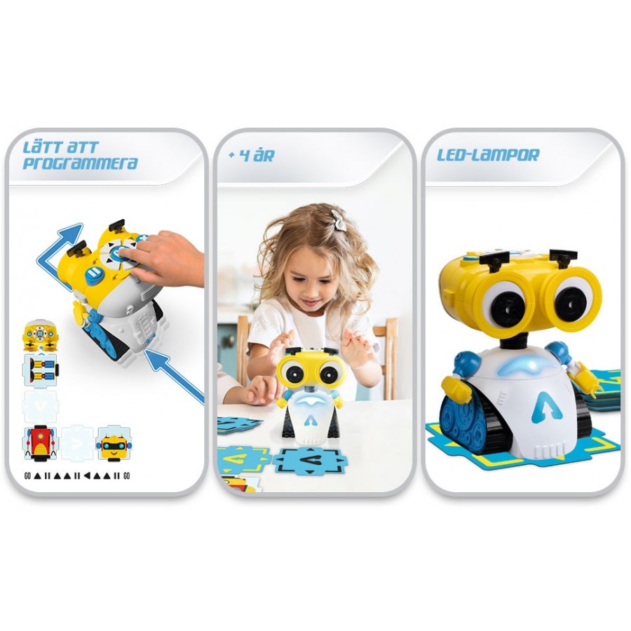 Inclui:1 robot Andy | 9 cartões para jogo de programação | 1 script de jogo para aprender a programar.