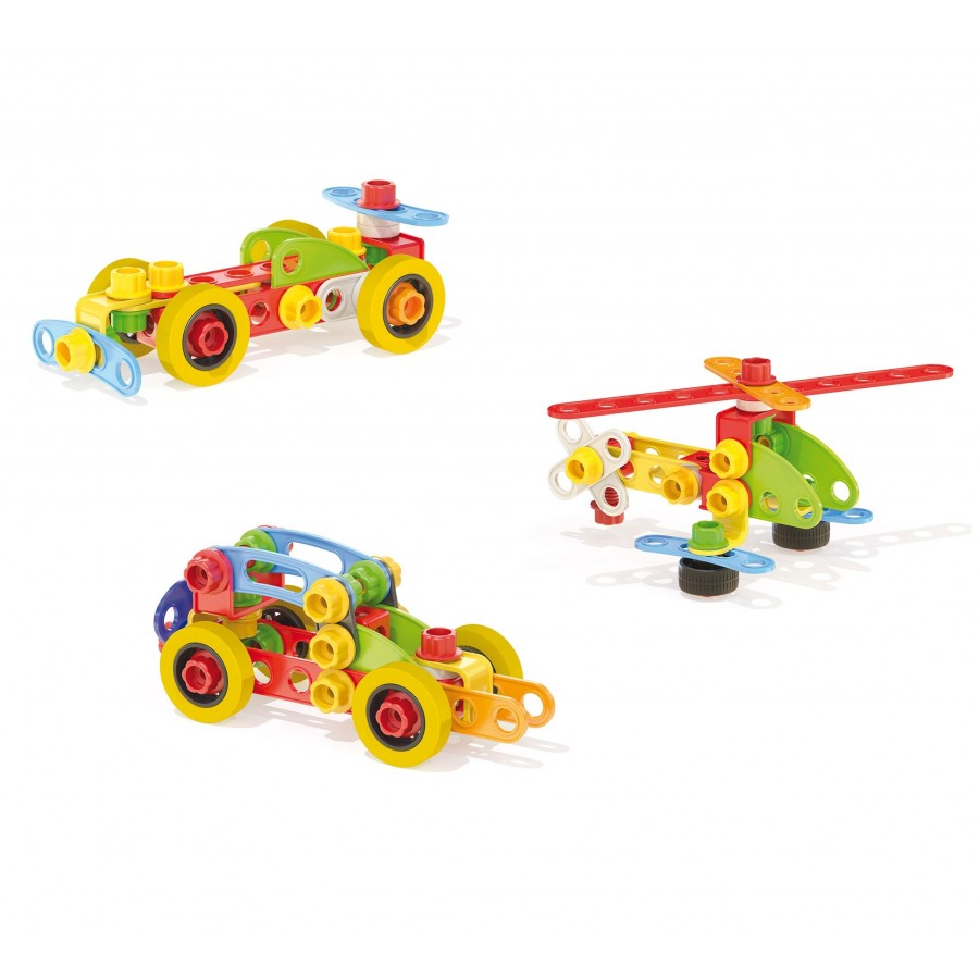 Tudo o que precisam para fazer construções planas ou tridimensionais de veíulos. Um jogo ideal para conhecer a mecânica e desenvolver habilidades motoras e de manipulação.