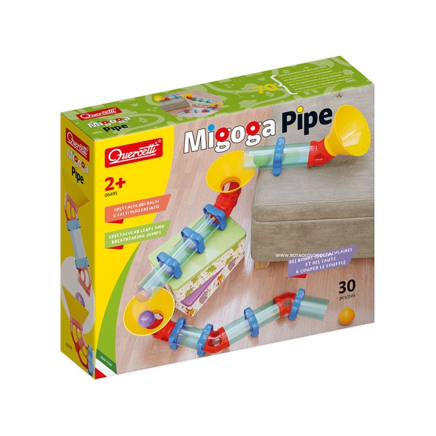 Com este brinquedo a criança pode montar a pista Migoga de uma forma livre e assistir ao circuito da bola de uma forma espontânea. 30 Peças incluídas para construir o formato desejado com a criatividade inerente a uma criança de tenra idade. Aproveita os desníveis e a gravidade natural para fazer rolar a bola da forma mais divertida possível.