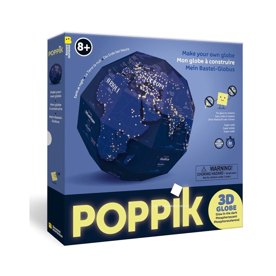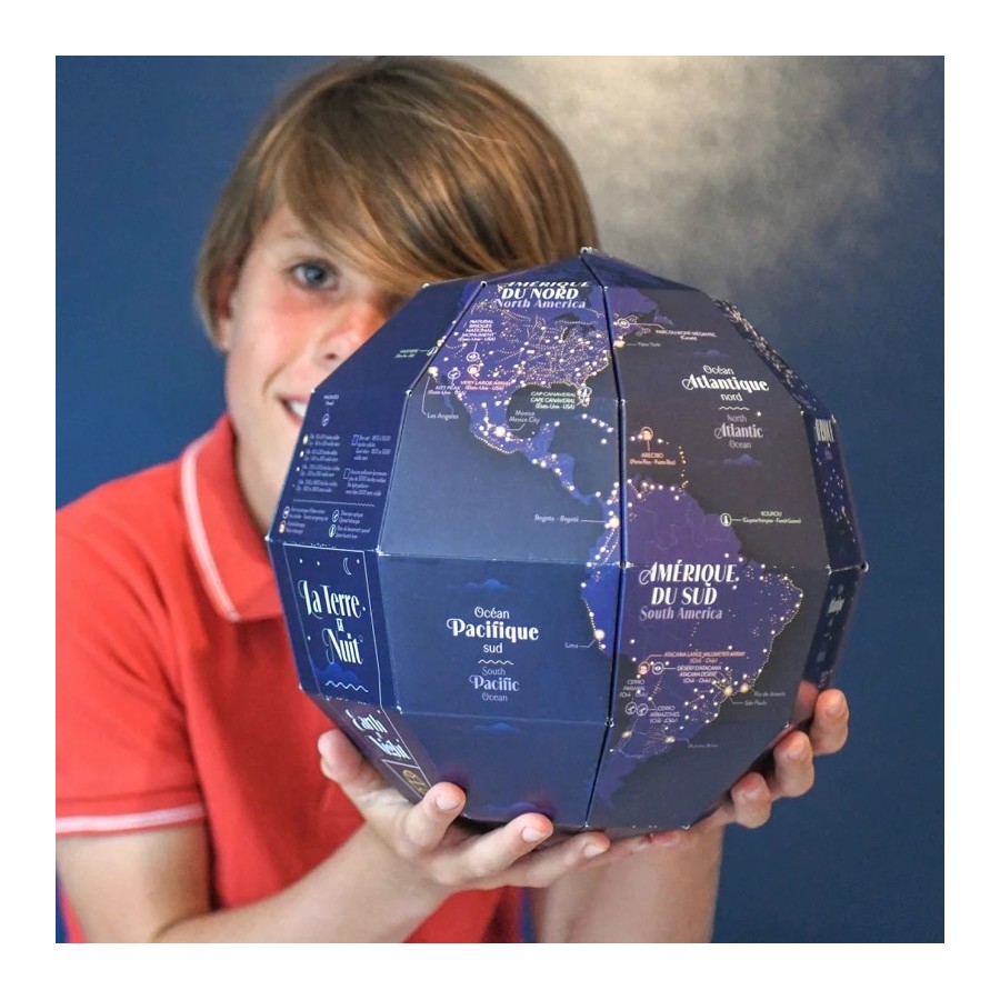 Contém: 1 globo em cartão (diâmetro 26 cm) com tinta fosforescente. Instruções de montagem.| No globo: legendas bilingues em francês/inglês. | Idade: 8+
