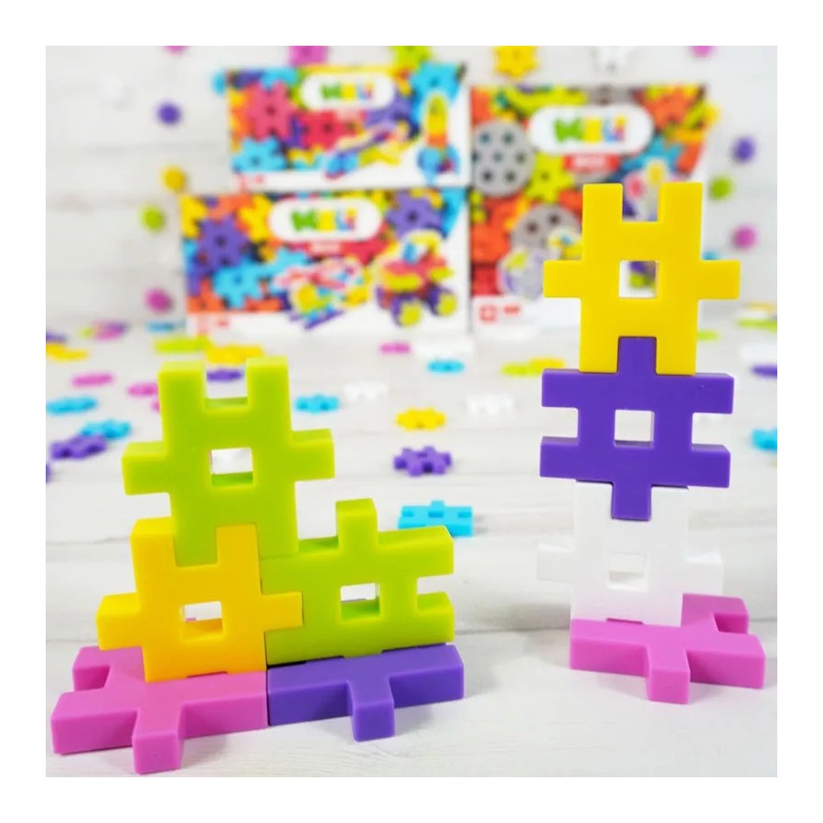 Com os blocos Meli Maxi, miúdos e graúdos vão divertir-se a juntar as peças de cores diferentes e a criar tudo o que possam imaginar. Um conjunto com blocos grandes, semelhantes às peças de um puzzle, que podem ser montados tanto na horizontal como em 3D, criando carros, casas, castelos, robots, foguetões e muito mais.