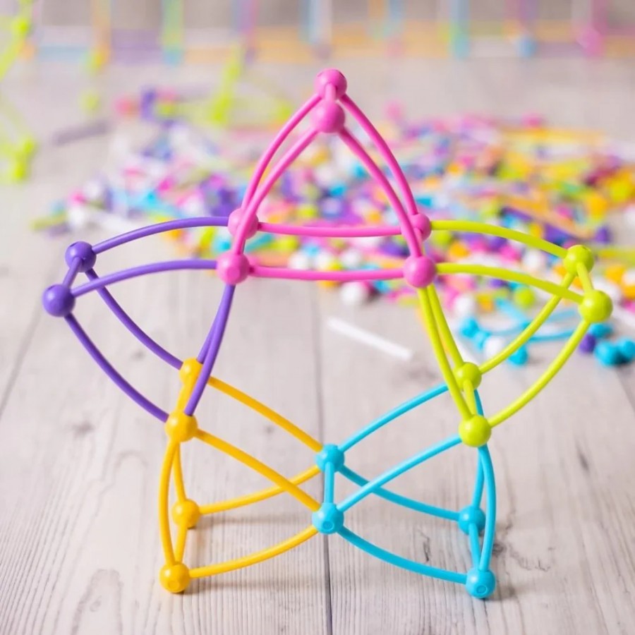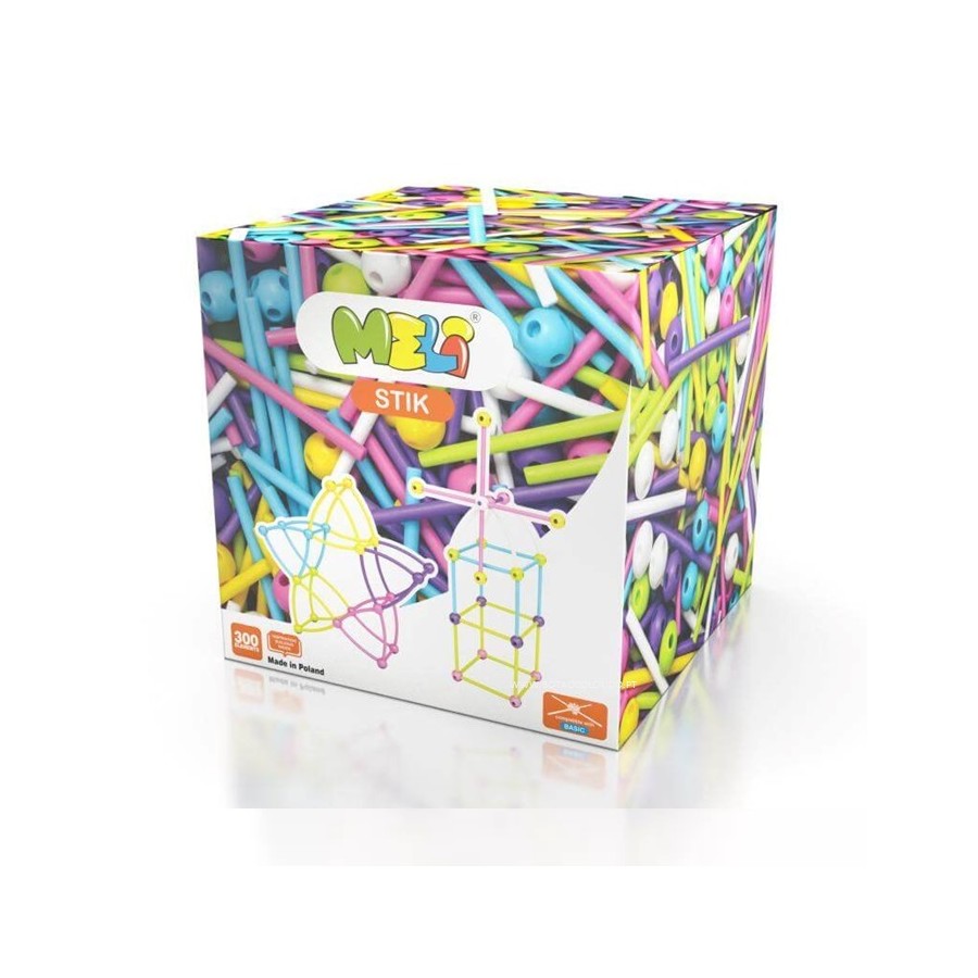 Meli Stik são varas flexíveis feitas de plástico macio, maleável e completamente seguro, que podem ser conectadas através de esferas únicas. Cada esfera tem 6 orifícios para unir as peças em vários ângulos, permitindo criar estruturas incríveis.