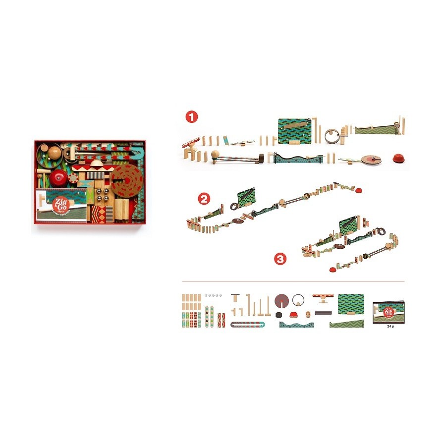 Fique hipnotizado por este conjunto de construção de reacção em cadeia de 48 peças. Um óptimo brinquedo de introdução para aprender conceitos STEM, como gravidade, força e momento, e como eles podem criar uma reacção em cadeia. Este conjunto de 48 peças com dominó de madeira, bolas e componentes irá inspirar a criatividade e desenvolver habilidades como perseverança, resolução de problemas STEM e pensamento crítico. Combine conjuntos de toda a gama e veja o quão grande de circuito você pode criar. Folheto incluído.