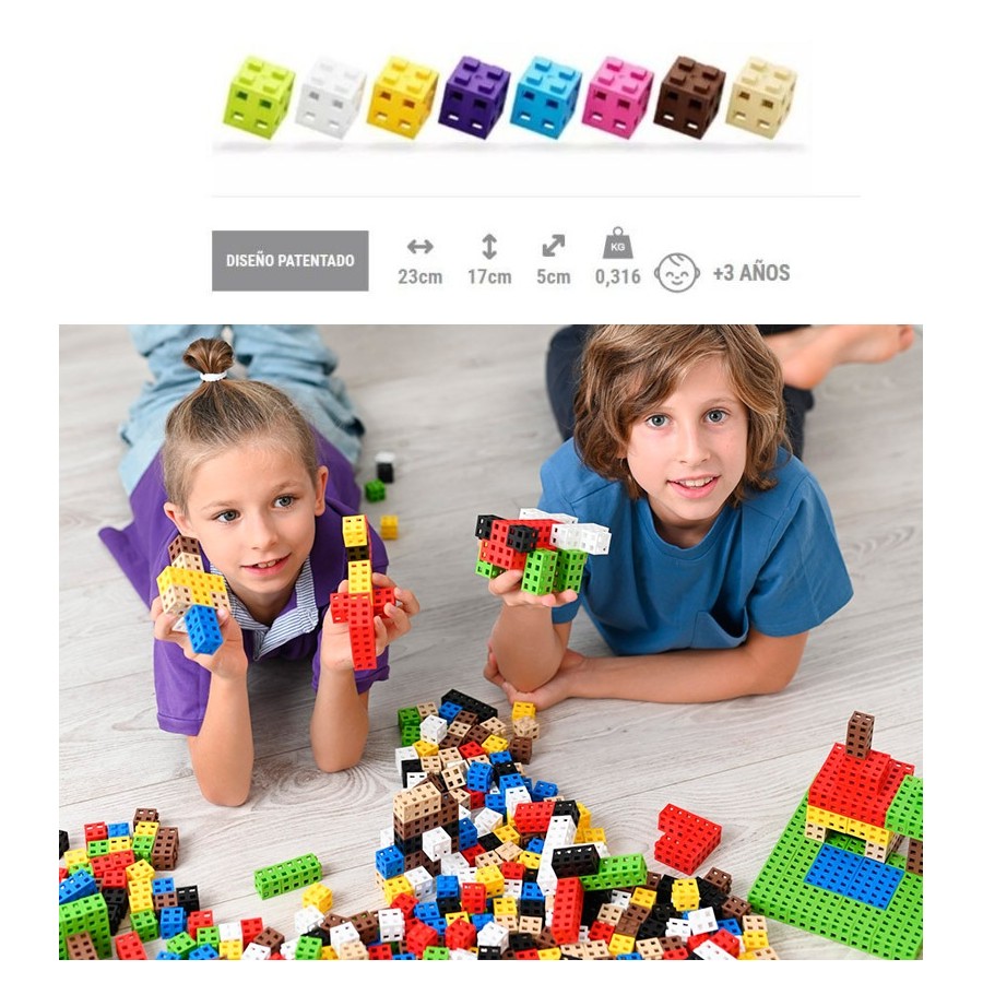 Material: PE sem BPA | Tamanho da embalagem: 28 x 22 x 5,5 cm |Peças flexíveis e 100% seguras para crianças | Dim peças: 2x2x2 cm | Os blocos são fáceis de montar e desmontar | Inclui: 100 blocos Meli | Idade: 3-93 anos