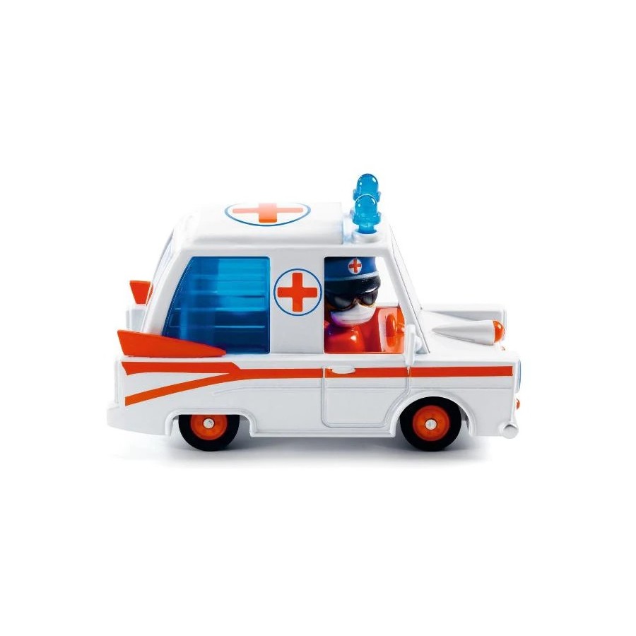 Rápido, alguém precisa de ajuda! A Hurry Ambulance salta para o seu veículo, abre as asas e voa o mais depressa que pode para tratar dos feridos, passando habilmente por entre o trânsito. O carro de metal vem equipado com suspensão, garantindo que ele aguente até as condições de corrida mais difíceis.