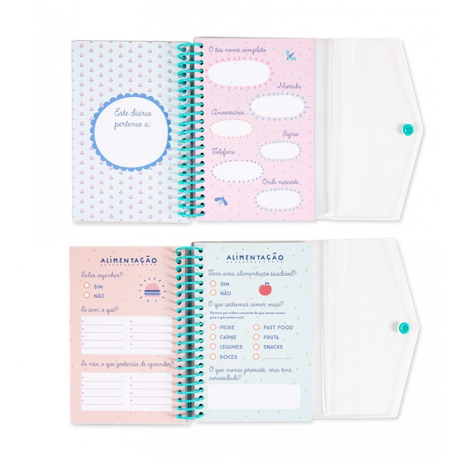 Neste diário vais poder revelar inúmeros segredos! Além dos teus (os mais importantes!), tens ainda espaço para as confissões dos teus amigos e até da tua família. Questionários, playlists, dedicatórias, aniversários, os teus favoritos e tops, entre muitas outras coisas para descobrir. O difícil vai ser decidir por onde começar!
