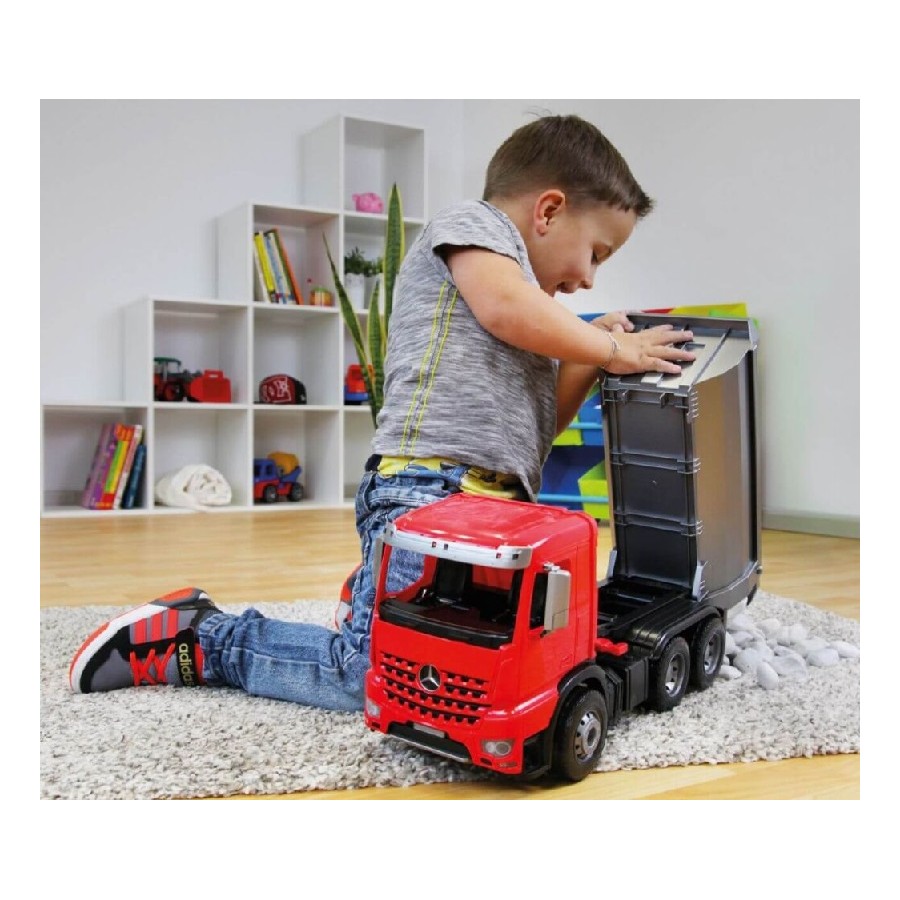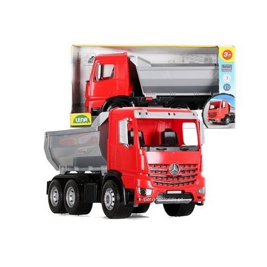Brincar com um camião basculante, igual ao que vemos nas obras, agora já é possível... Da marca alemã, o seu filho agora pode levar para a rua, para a praia ou mesmo brincar em casa com esta fantástica réplica de um camião da Mercedes Benz... Inclui peças articuladas para que a brincadeira seja mais realista.
