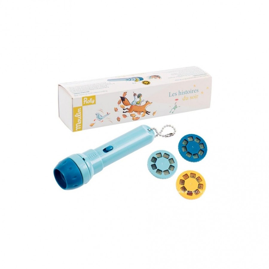Dim. 16 x 4cm | Marca: Moulin Roty | Idade: +4 anos | Contém: lanterna, pilhas e 3 discos com belas ilustrações num total de 24 imagens