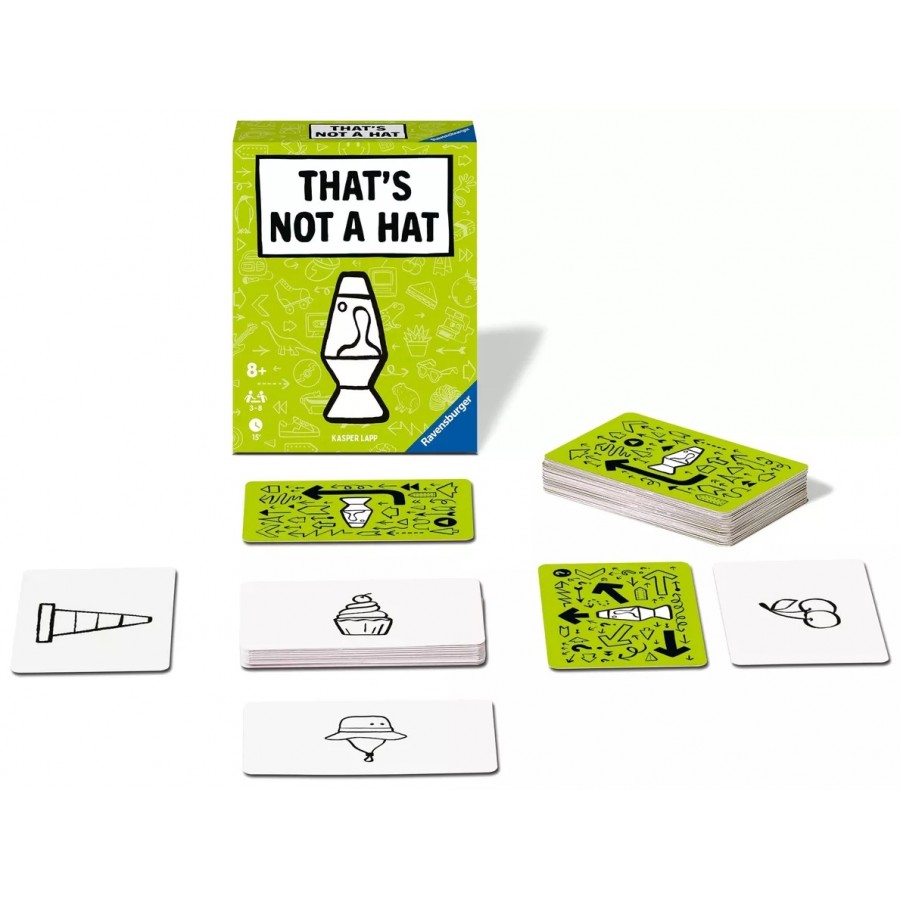 That’s Not a Hat é um jogo de festa para 3 a 8 jogadores, com mais de 8 anos, onde tudo o que você deve fazer é lembrar quem tem qual carta. Um jogo de cartas que é um campo minado de memória, um "bailinho" de bluff e muita gargalhada. Tempo de jogo de 15 a 20 minutos e é muito divertido com uma jogabilidade adequada para crianças, adultos, famílias e amigos. Um jogo rápido em que tens que conseguir ser o primeiro a livrar-te de todas as tuas cartas. Tem cuidado! a tua mente vai pregar-te partidas. Diverte-te com este jogo de cartas alucinante!