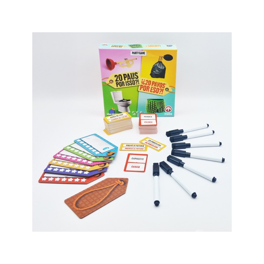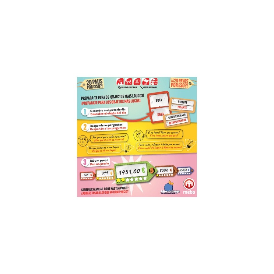 Em 20 Paus por Isso?! prepara-te para os objetos mais loucos! Em cada ronda descobre o objeto do dia que é sempre uma junção cómica entre objetos e características aletórias. Na segunda fase, poderemos fazer perguntas ao narrador sobre esse objeto. Por fim, cada um dará um preço a esse mesmo objeto. O jogador que deu o preço mais equilibrado é aquele que pontuará mais. 20 Paus por Isso?! é um party game genial que junta imaginação e a tensão de um leilão. Perfeito para grupos de amigos que gostam de um bom debate.