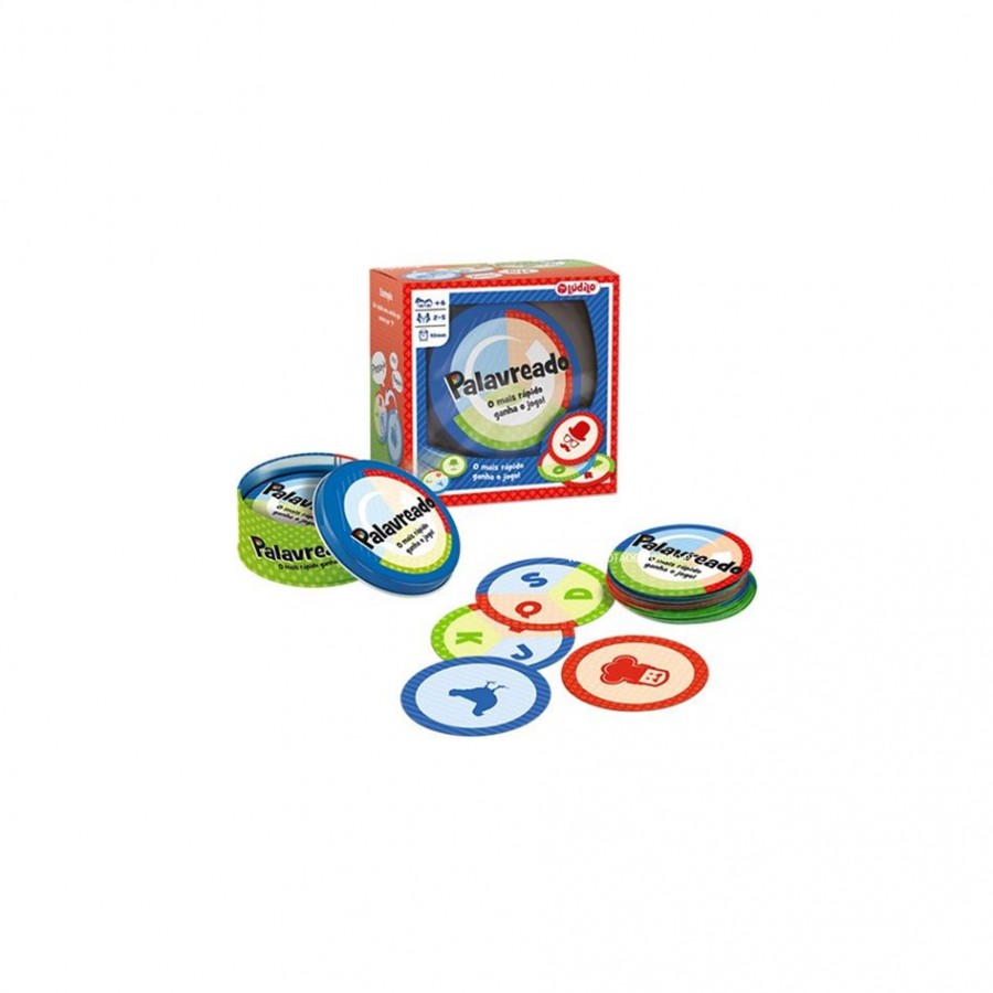 Um divertido jogo de cartas de dupla face. De um lado, estão representadas as 10 categorias do jogo e, do outro lado, 3 letras de cores diferentes. Sê o primeiro a encontrar uma palavra da categoria indicada no cartão que comece com a letra da mesma cor. Sê o mais rápido e torna-te o SUPER-PALAVREADO!