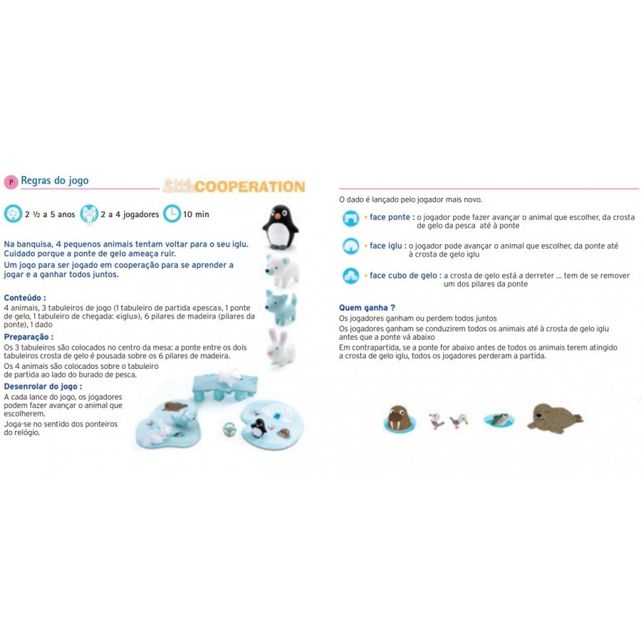 Um fantástico jogo de cooperação! Quatro pequenos amigos tentam voltar para o seu iglu. Cuidado, porque a ponte de gelo começa a ruir. Um jogo para ser jogado em cooperação para se aprender a jogar e a ganhar em conjunto com os restantes jogadores.
