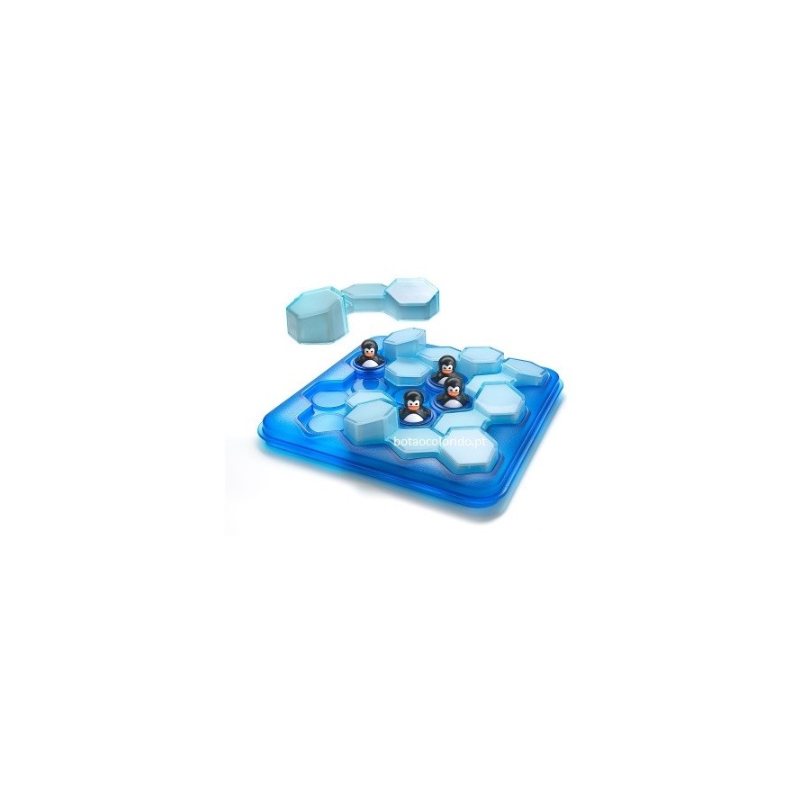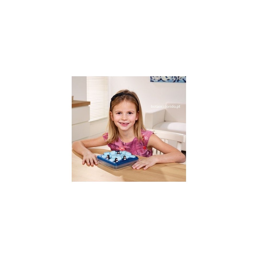 Descobre a festa de pingüins Pool, com 60 desafios. Para jogar basta colocar os pinguins na água no tabuleiro de jogo como mostra a carta de desafio e, em seguida, colocar os blocos de gelo em torno deles.