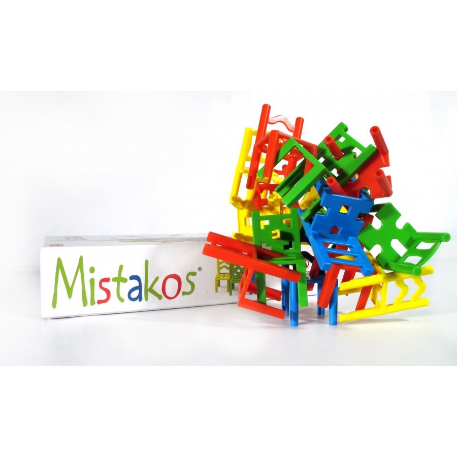 Durante este divertido jogo de Mistakos cada jogador vai tentar empilhar o máximo de cadeiras, estando apenas uma a tocar na mesa. Mas cada jogador tem de ter muito cuidado para na sua vez não fazer cair algumas cadeiras ou mesmo toda a pilha!