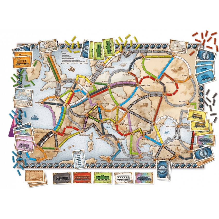 Das encostas escarpadas de Edimburgo para as docas iluminadas pelo sol de Constantinopla, das vielas empoeiradas de Pamplona para uma ventosa estação em Berlim, Ticket to Ride Europa leva-o, nesta emocionante aventura de comboio, a percorrer as grandes cidades da Europa. Com milhões de cópias vendidas em todo o mundo, Ticket To Ride Europa é um dos jogos mais conhecidos e apreciados. A ideia é conseguir ligar o maior número de cidades do velho continente através de um sistema de cartas muito simples, engenhoso e muito emotivo. Quem conseguir fazer mais ligações ganha. Mas atenção, que a concorrência pelas rotas vai deixar alguns de fora.