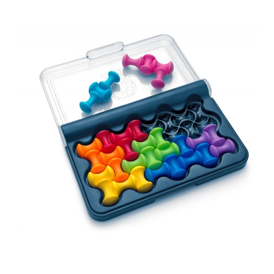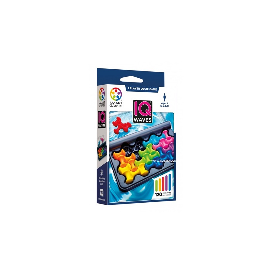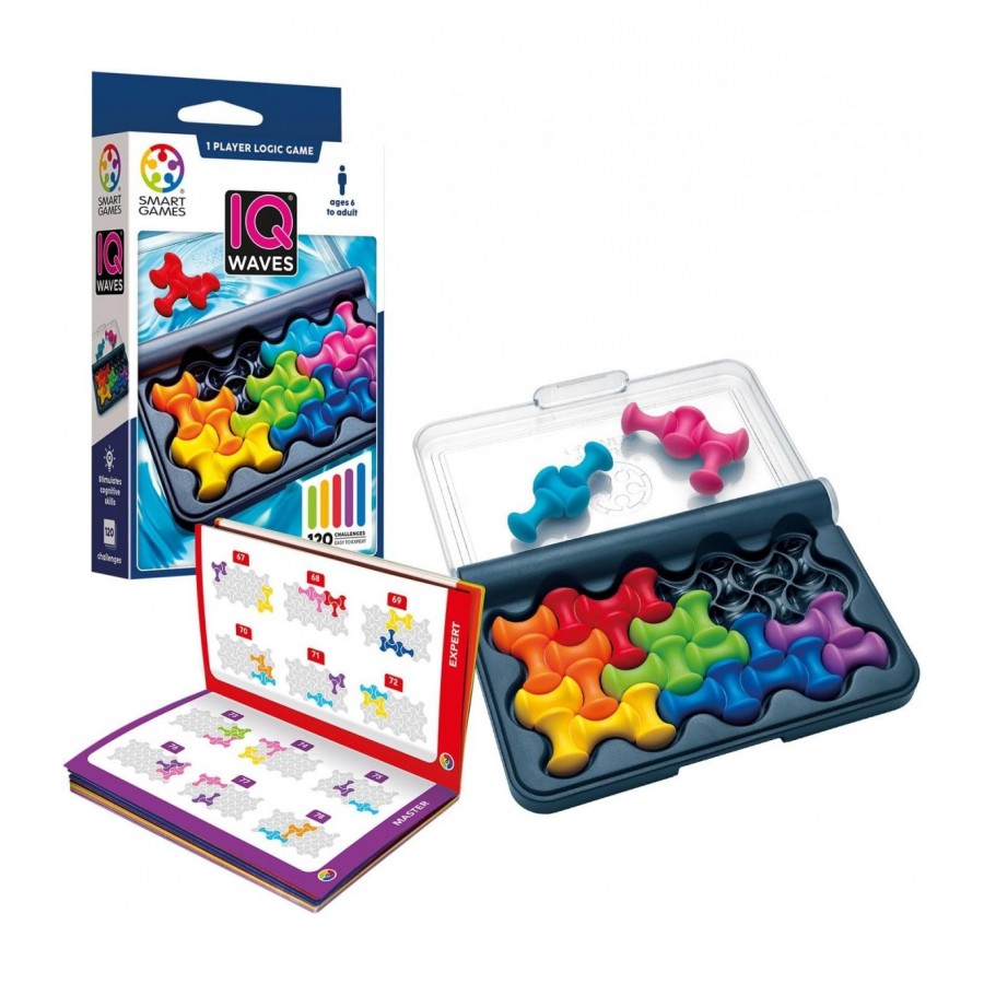 Este jogo de QI está aqui para fazer barulho! Escolhe um dos 120 desafios e preenche a base colocando as peças do jogo, de toque suave, no local e orientação corretos. Se uma peça não couber, girá-la 90° pode ajudar...ou não! IQ Waves vem em formato compacto com tampa para levar e jogar em qualquer parte. Este jogo de lógica e raciocínio é adequado para crianças e adultos. Estás pronto para aproveitar as tuas ondas cerebrais?
