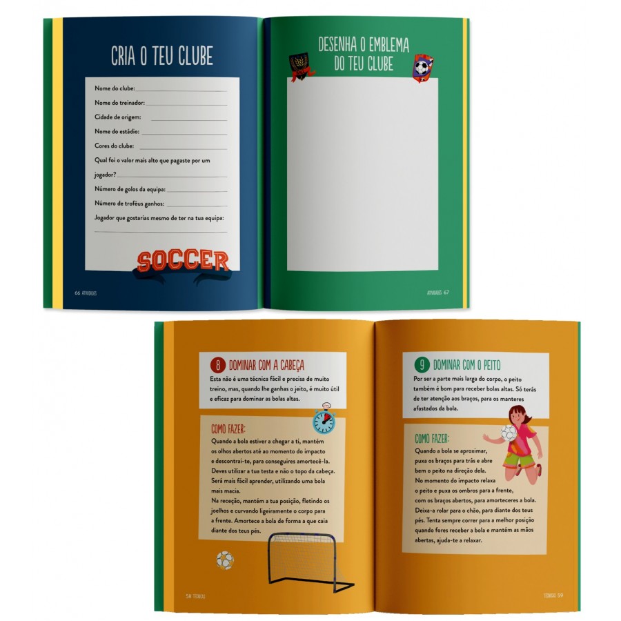 Uma compilação de histórias, factos e curiosidades sobre o mundo do futebol; textos curtos, de linguagem simples e acessível; dois capítulos com regras e técnicas; jogos e passatempos no final do livro; pequeno formato; capa mole.