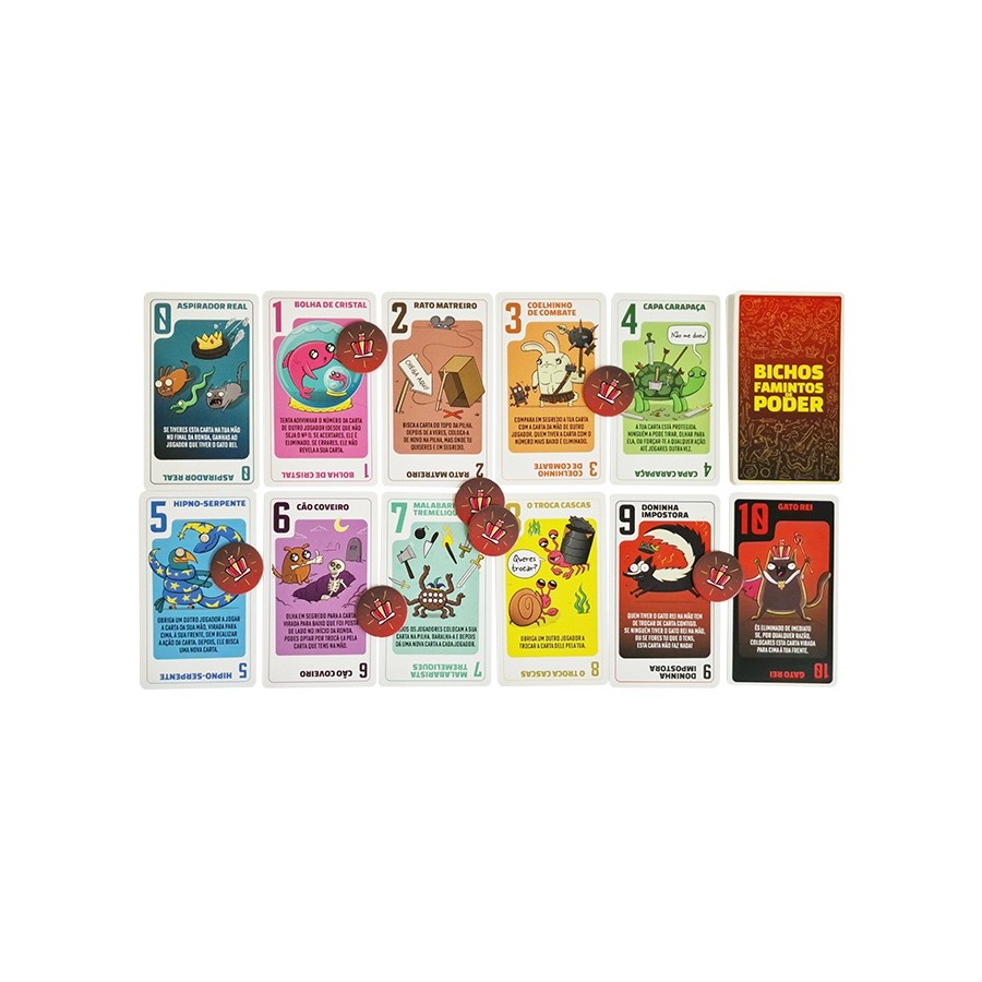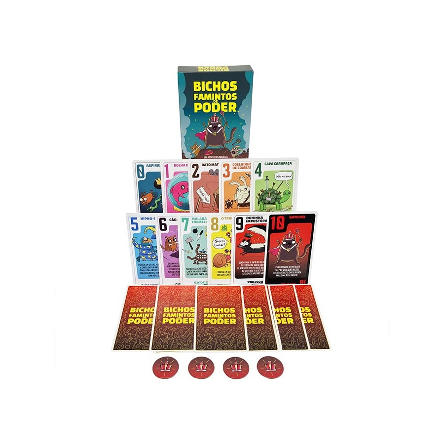 Power Hungry Pets é um jogo de estratégia enganadoramente simples no qual tudo se resume a uma única carta. Cada carta tem um número e uma forma de chatear os outros jogadores. Quanto maior for o número da carta, mais forte ela é. Bisca e ficas com duas cartas. Tens de decidir qual a que fica contigo e qual a que colocas na mesa para massacrar os outros jogadores. No final do jogo, quem tiver a carta mais alta ganha!