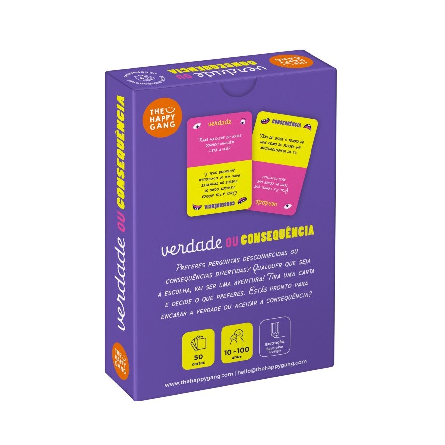 Qualquer que seja a escolha, vai ser uma aventura! Tira uma carta e decide o que preferes. Estás pronto para encarar a verdade ou aceitar a consequência? 50 perguntas e desafios para te divertires à grande!
