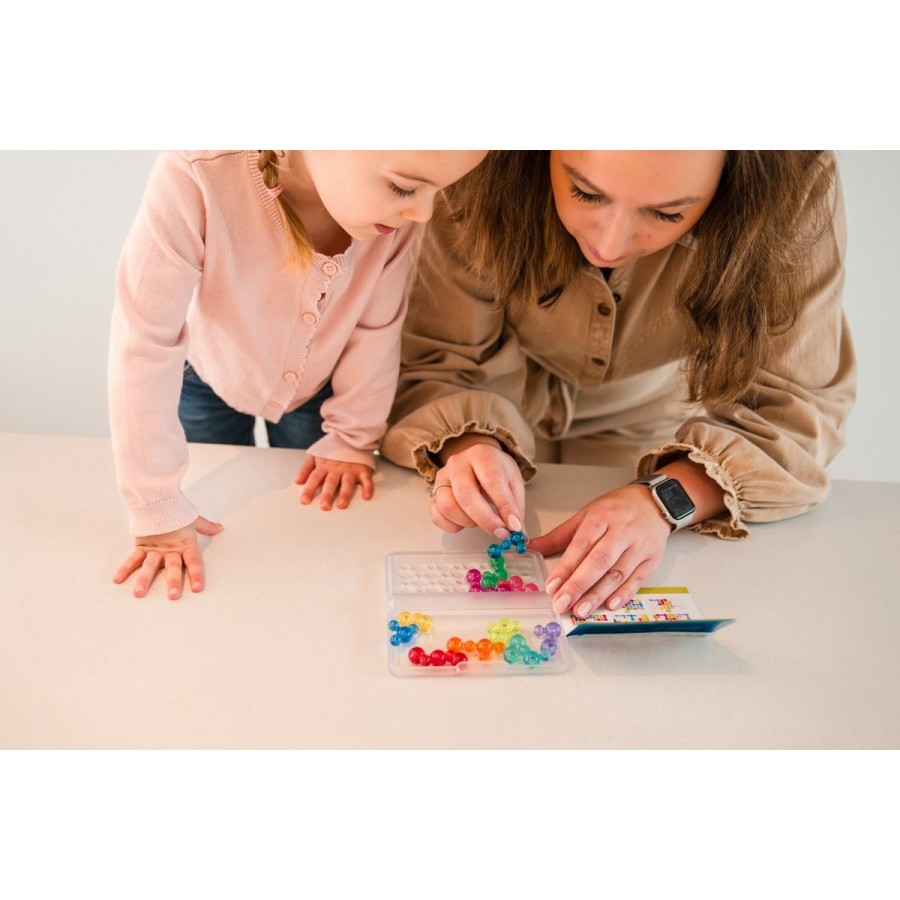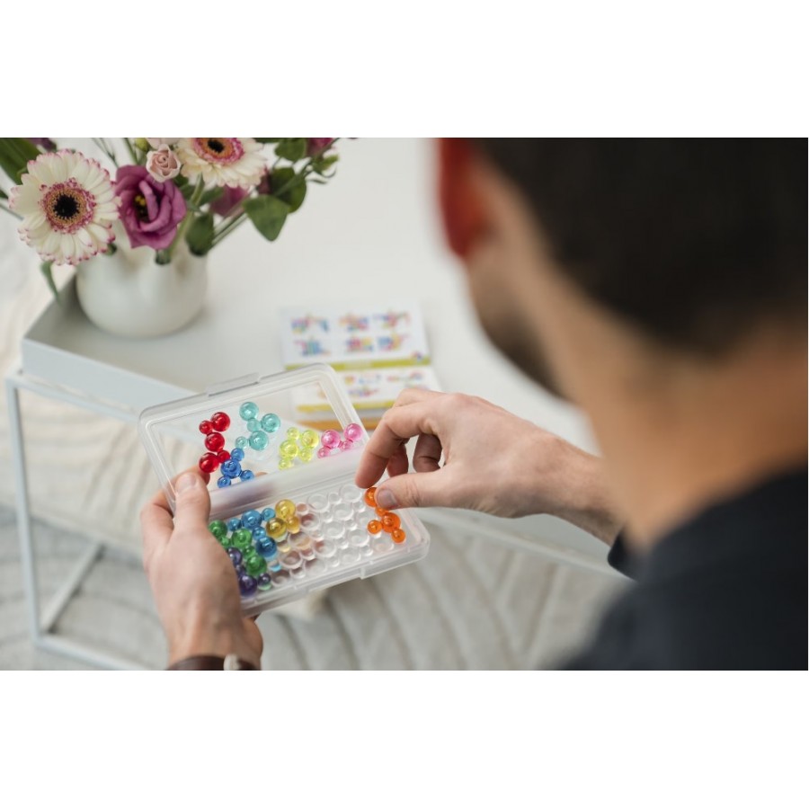 Desafia o teu poder de raciocínio com o IQ Bubbles! Este viciante jogo de lógica desafia os jogadores a encaixar todas as peças coloridas e transparentes de bolhas na base compacta e portátil. Com 120 desafios para resolver – de Iniciado até Mestre – o IQ Bubbles é perfeito para crianças e adultos!
