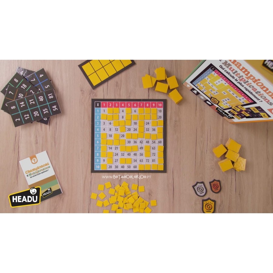 Quem é mais rápido nos cálculos? Pegue numa carta, leia a multiplicação e encontre o resultado correspondente. Mas esteja avisado, por vezes precisará de ser mais rápido que o seu adversário! Com este fantástico jogo de tabuadas, treinará as suas capacidades de cálculo e aprenderá as tabuadas de multiplicação!