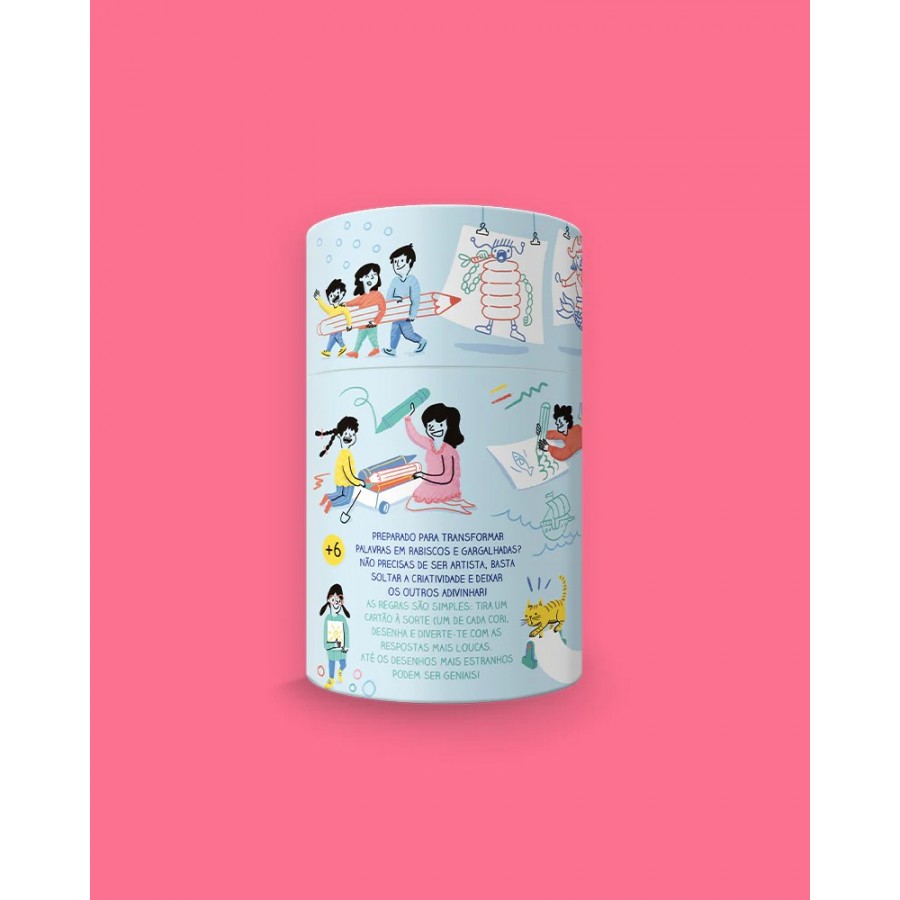 As regras são simples: tira um cartão à sorte (um de cada cor), desenha e diverte-te com as respostas mais loucas. Até os desenhos mais estranhos podem ser geniais!