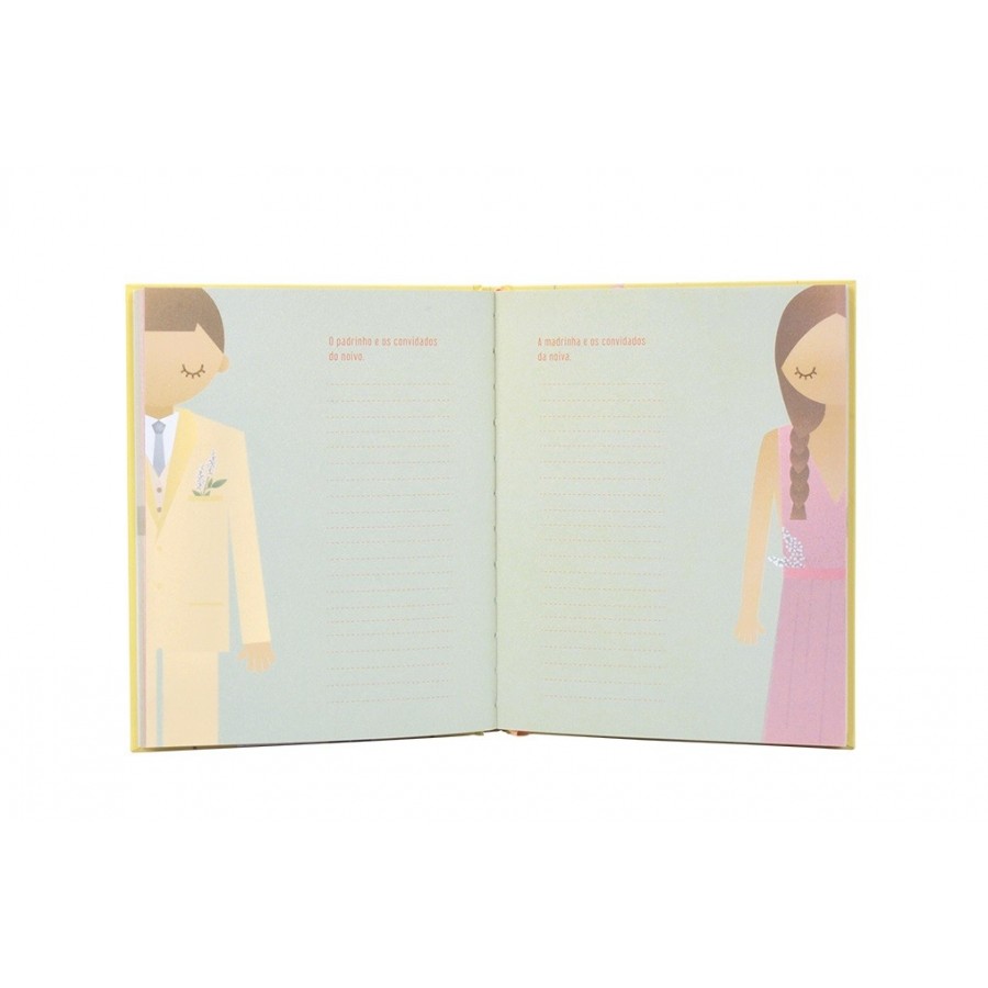 Foi o primeiro dia das nossas vidas. Desde o dia do pedido até à lua de mel, foram momentos inesquecíveis. Escrevemos aqui esta história de amor para eternizar a nossa felicidade. Porque, tal como nos contos de fadas, viveremos felizes para sempre. Presente perfeito para todos os futuros casados. Um livro de registo, com capa dura e bolsa no final para guardar recordações.