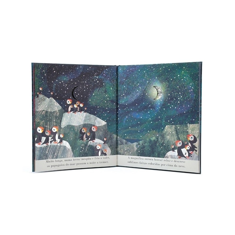 Já questionaste algum dia por que razão a Lua brilha? Enquanto a Lua aumenta e diminui, o mundo cá em baixo está repleto de atarefadas criaturas nocturnas. Espreita através das páginas e observa como a Lua se transforma ao longo do ciclo lunar, enquanto te delicias com as deslumbrantes ilustrações, que dão vida a um texto lírico e suave.