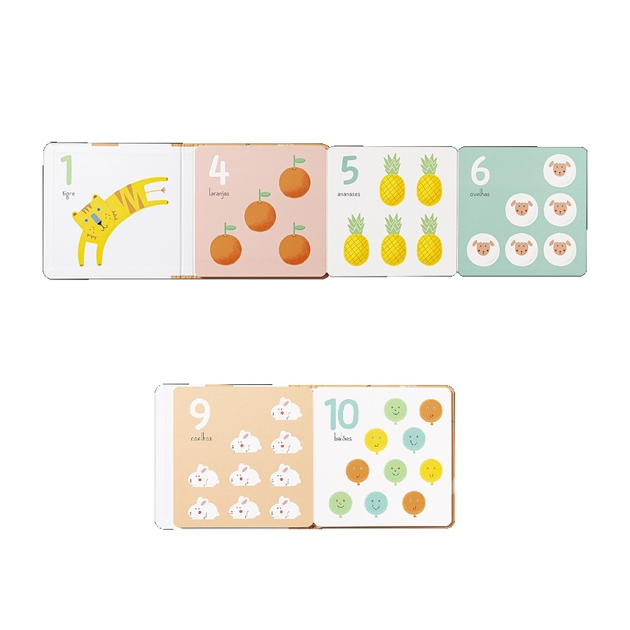 Livro de capa dura que desenvolve as primeiras competências do bebé, pois permite explorar a posição de bruços, essencial para o controlo da cabeça e pescoço nos primeiros meses de vida. O seu formato é ideal para que o bebé, em posição lateral ou de bruços o observe. Ideal para jogos de nomeação e observação durante o primeiro ano de vida.