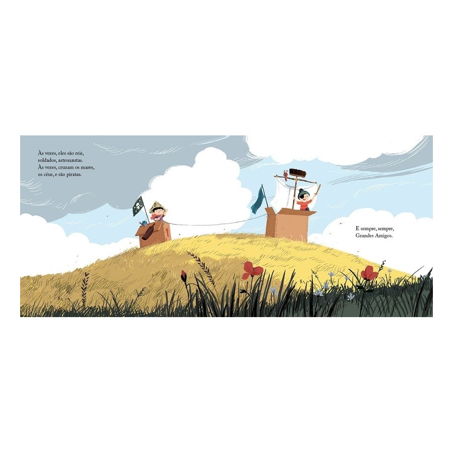 Um dia, ouve bater à porta. O Nico e o Gui preparam uma surpresa! Tem fitas ondulantes, é de todas as cores, faz barulho e tem, tem... RODAS! O que será? GRANDES AMIGOS, do ilustrador Benji Davies, é prémio Andersen na categoria dos 0 aos 6 anos. Uma história sobre amizade, partilha e a aceitação de novos sentimentos. A aventura de crescer!