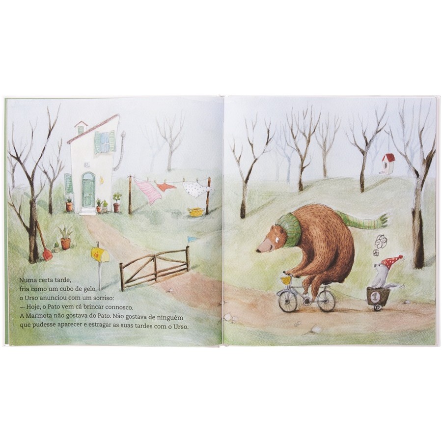O Urso e a Marmota são muito amigos e brincam sempre juntos. Adoram procurar tesouros escondidos, e cantam e dançam como se fossem grandes estrelas. Mas, numa certa tarde, o Urso diz à Marmota que convidou o Pato para brincar com eles. Ora, nem pensar! A Marmota não gosta do Pato, nem de qualquer outro animal que atrapalhe a sua amizade exclusiva com o Urso. Então resolve manter o Pato longe das brincadeiras. E não se poupa a esforços!