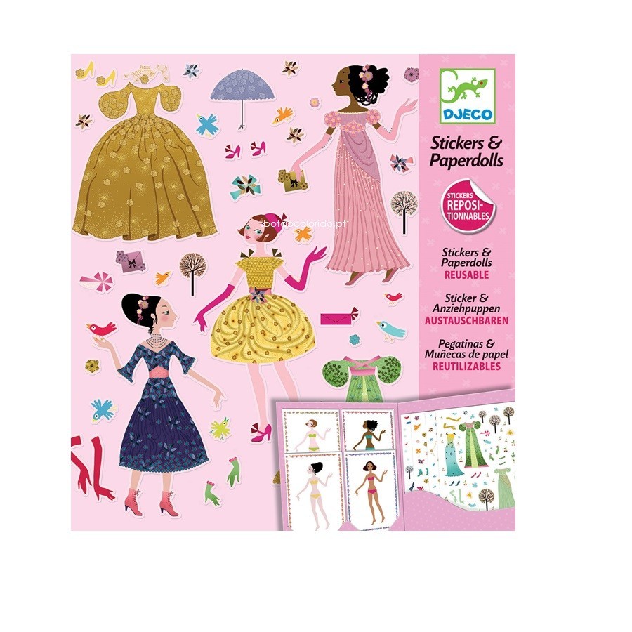 Óptimo para manter as crianças divertidas se em casa ou em movimento, este conjunto é composto por 8 meninas para vestir com 4 folhas de roupas bonitas e acessórios. Os adesivos são de vinil reutilizável, que se prendem com segurança e são armazenados em uma carteira de armazenamento resistente. Os adesivos podem ser retirados novamente e reutilizados.
